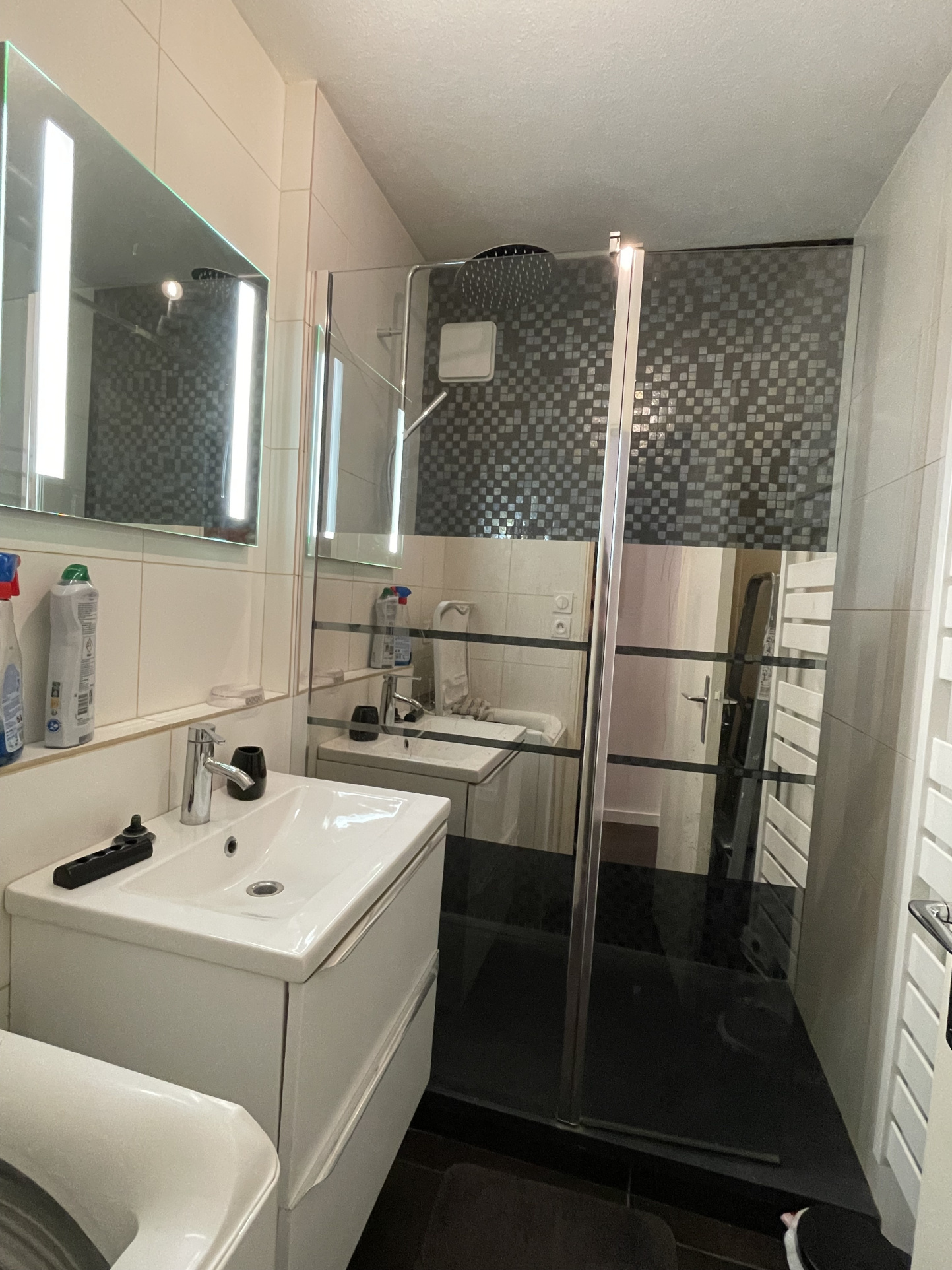 Situé au 4ieme etage et dernier avec ascensseur, celui ci se compose d'un séjour avec cuisine equipée ouverte, une chambre avec rangement, une salle d'eau, WC ainsi qu'une cave.