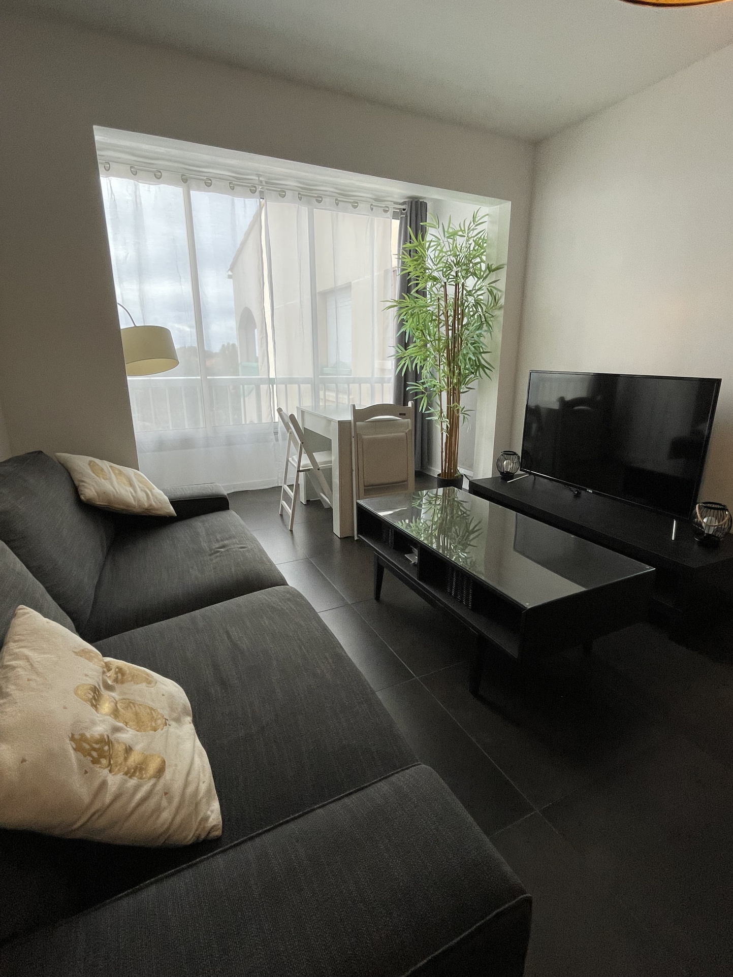 A deux minutes des plages et des commerces a pieds appartement type 2 renové, meublé, exposé plein sud avec petite vue mer.