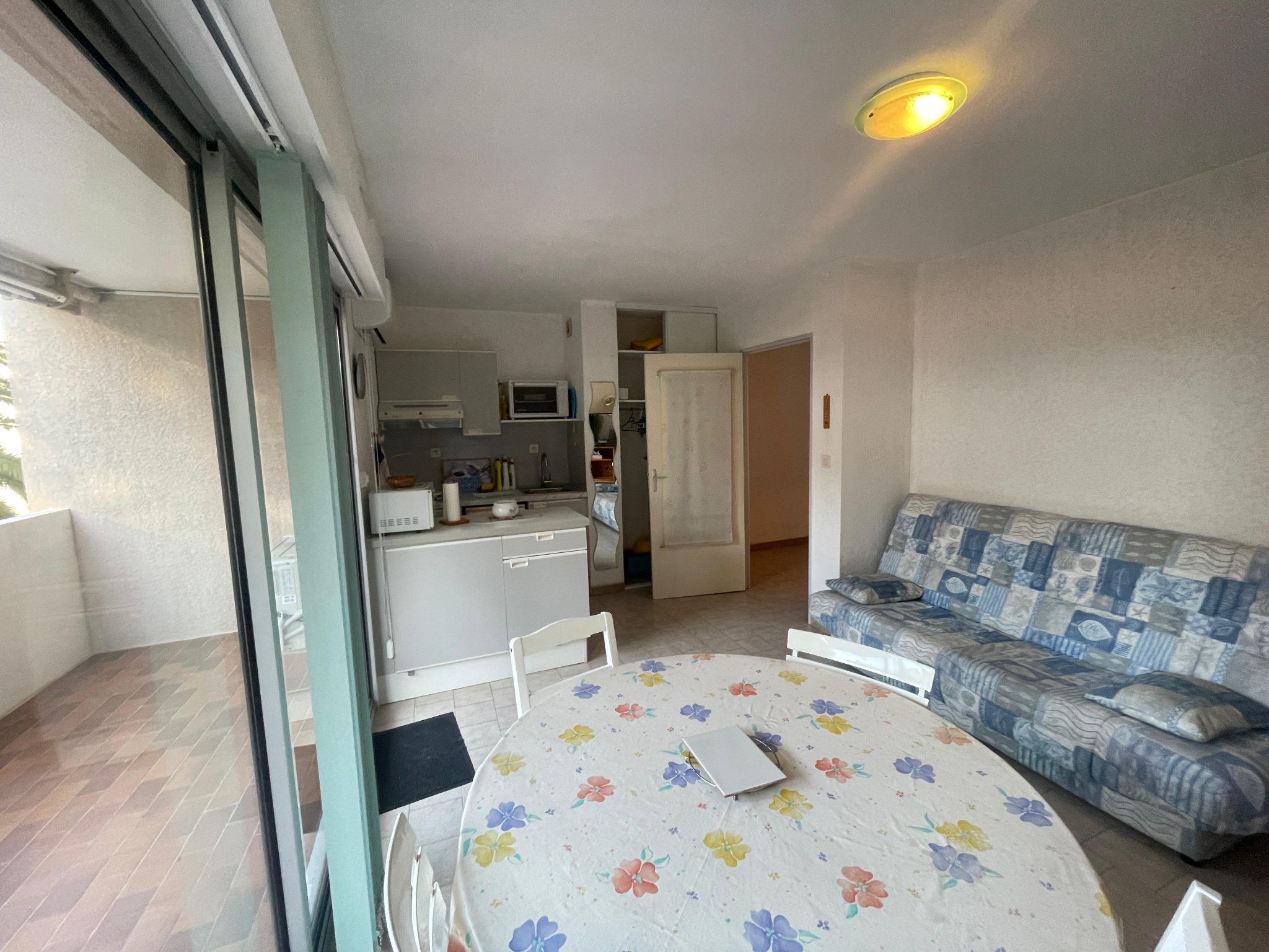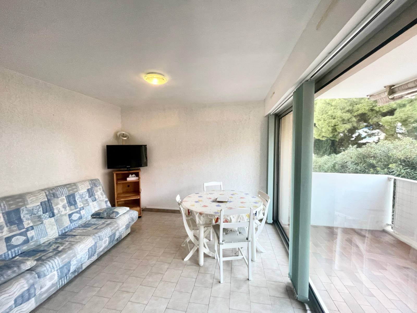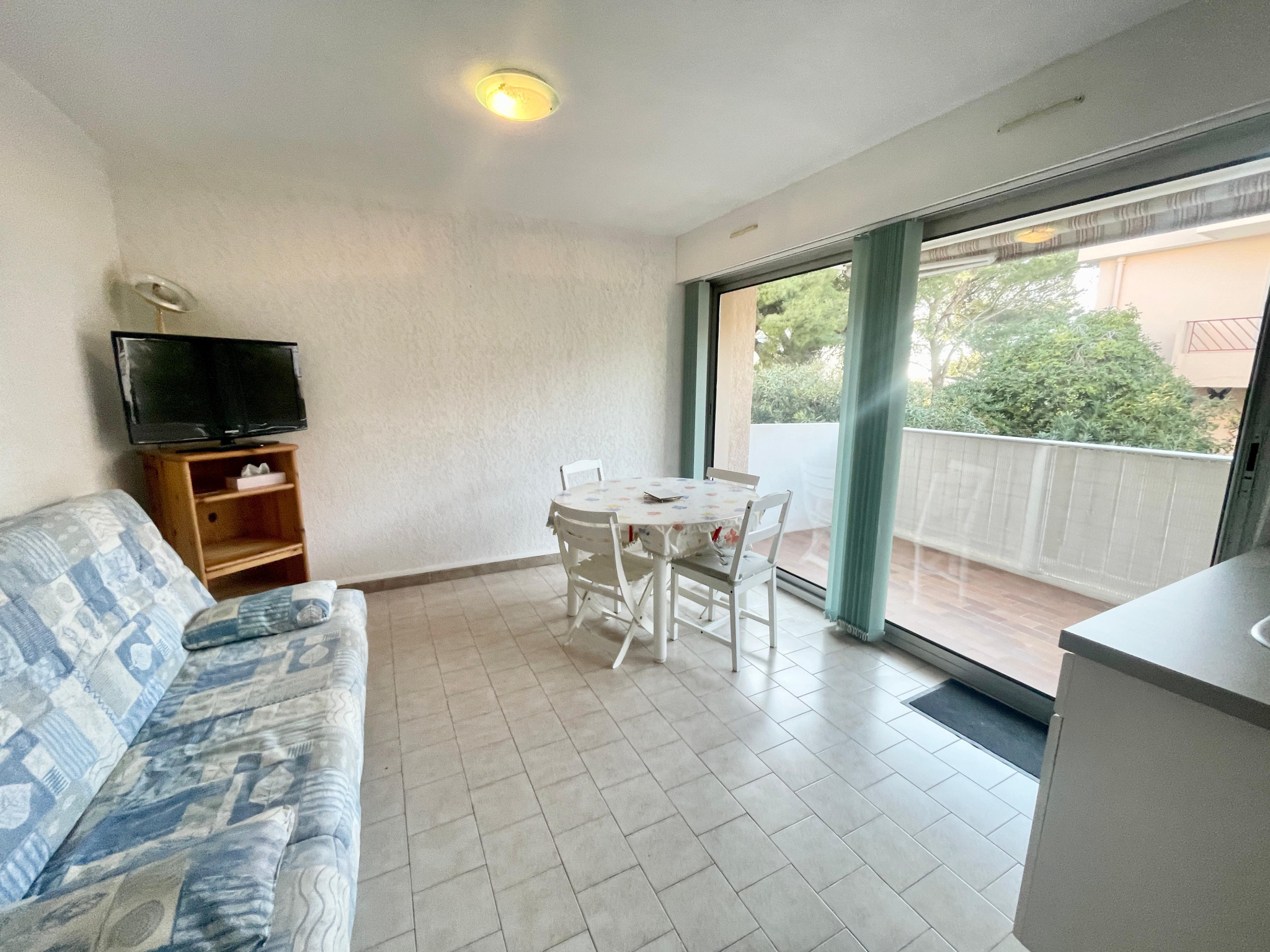 À l’extérieur, une terrasse généreuse et au calme devient un véritable prolongement du logement : idéale pour recevoir, travailler en plein air ou simplement profiter du climat méditerranéen. La climatisation assure un confort optimal toute l’année. Enfin, une place de stationnement privative accompagne le bien ; un avantage rare et recherché dans ce secteur.