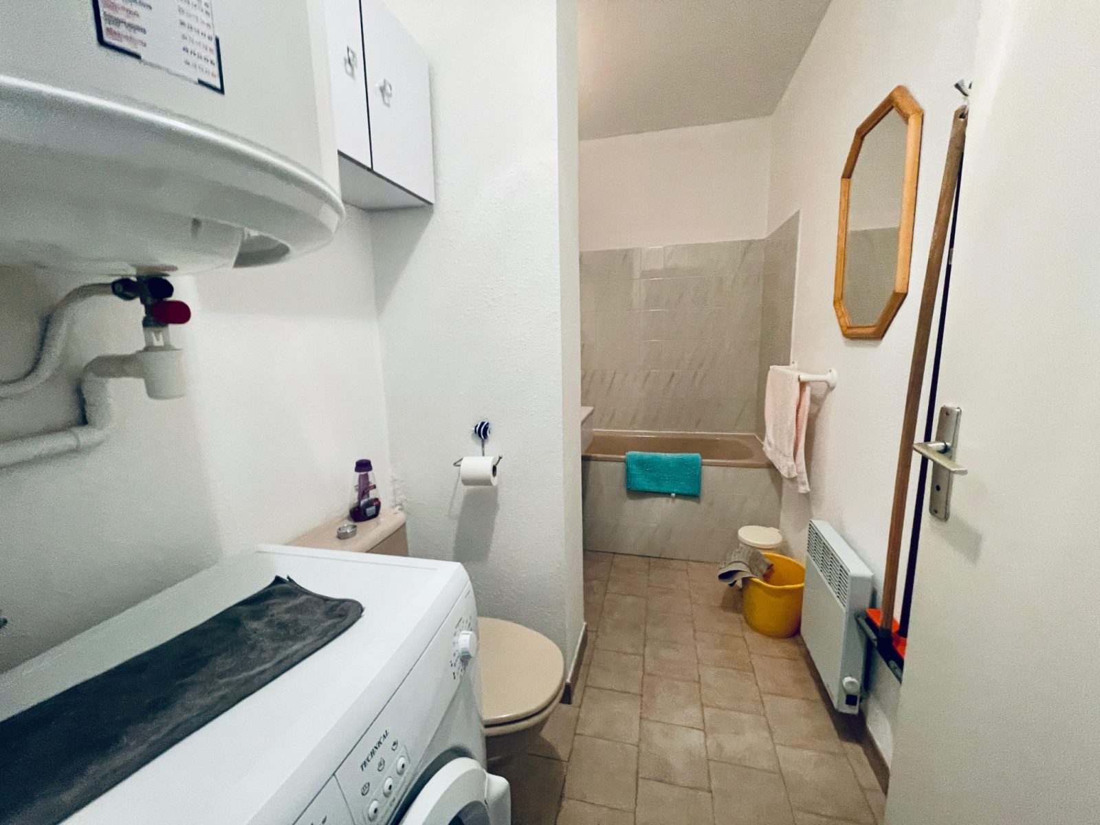 Installé au 1er étage d’une résidence sans ascenseur, l’appartement propose une distribution intelligente : chaque mètre carré est exploité avec cohérence. La pièce de vie, baignée de lumière, accueille une cuisine ouverte moderne qui prolonge naturellement l’espace salon. Le coin nuit, distinct et bien délimité, offre une vraie sensation d’intimité. La salle d’eau avec WC, équipée d’un lave-linge, complète l’ensemble avec fonctionnalité.