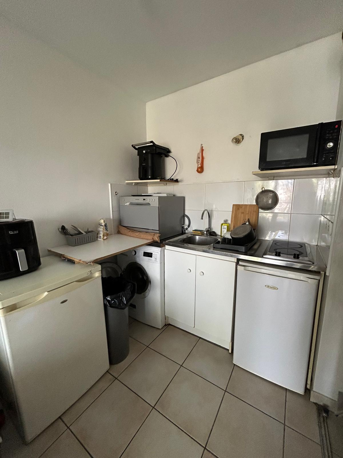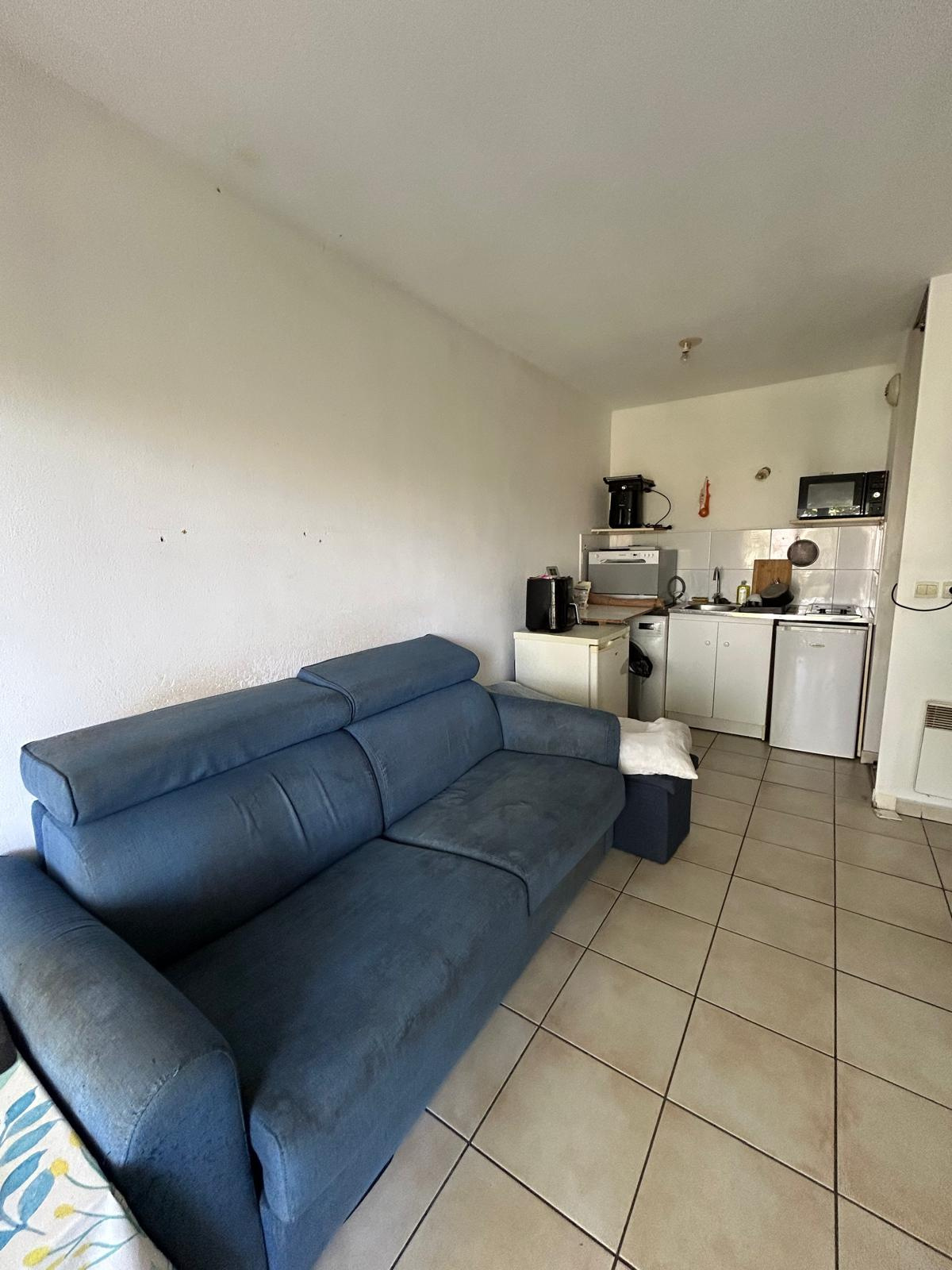 Au 2ème étage d’une copropriété sécurisée et bien entretenue, le logement se compose d’une entrée, d’une pièce de vie avec kitchenette équipée, d’un réfrigérateur mis à disposition, d’un accès à une terrasse, d’une salle d’eau avec WC et d’un placard de rangement.