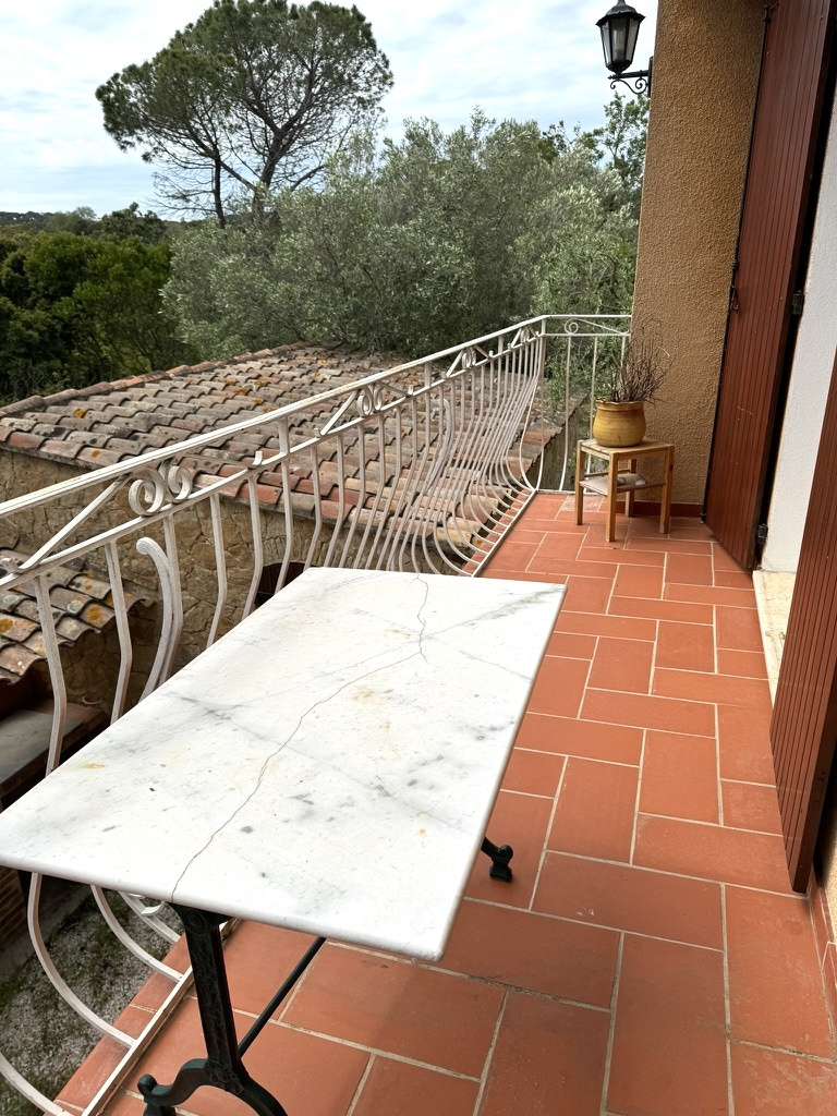 Quartier Fabregas, chemin de l'Oide aux pieds de la forêt et à 900 M des plages de la Verne et Fabregas, appartement de type 4 de 84 M2, dans une villa divisée en 3 appartements, situé au 1er étage, il se compose d'un séjour avec cuisine Américaine semi-équipée d'une surface de 47M2, donnant sur un balcon plein sud sans vis à vis, 3 belles chambres, salle d'eau WC, double vitrage, climatisation dans toutes les pièces, électricité aux normes, possibilité d'aménager les combles de 98 M2, stationnement dans la copropriété.