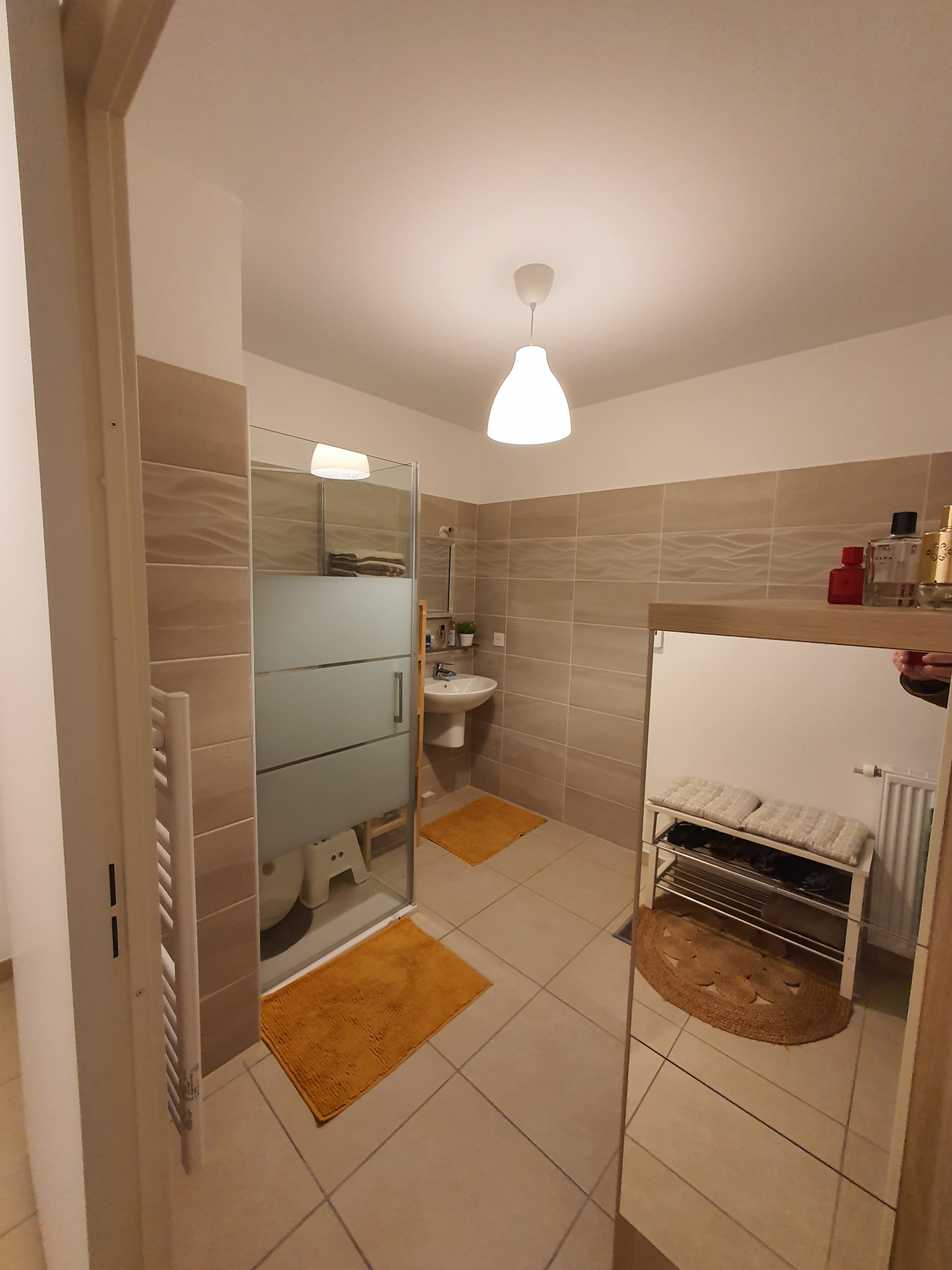 Celui ci est composé d'une entrée, d'un séjour avec kitchenette, d'une salle d'eau avec W.C. d'une spacieuse terrasse de 9m² ainsi qu'une place de parking en sous sol.